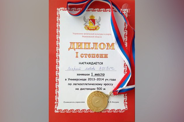 Первое место в универсиаде вузов по легкоатлетическому кроссу на дистанции 500 м